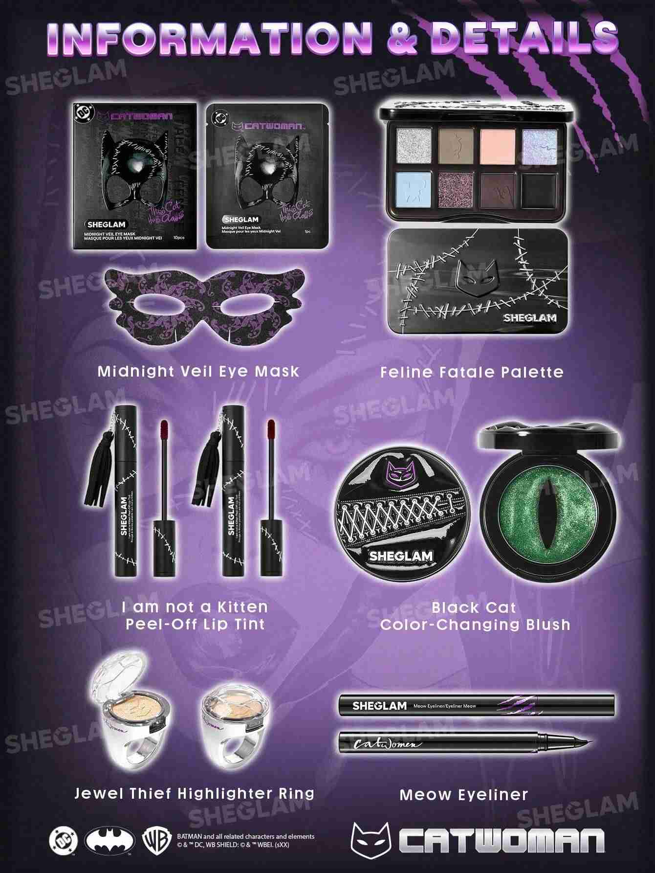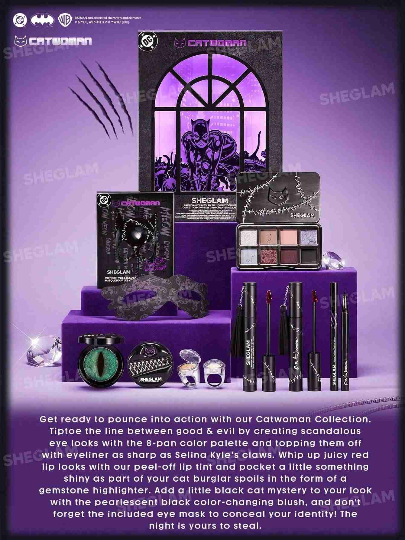 پک Catwoman شیگلم (SHEGLAM Catwoman Makeup Set) یکی از خاصترین و محبوبترین مجموعههای آرایشی این برند است که با الهام از شخصیت جذاب و مرموز کتوومن طراحی شده. این ست برای افرادی ساخته شده که به دنبال ظاهری درخشان، دلفریب و با اعتمادبهنفس هستند. طراحی بستهبندی آن سیاه و طلایی است که حس لوکس و قدرت را القا میکند — درست مانند خود کتوومن.
